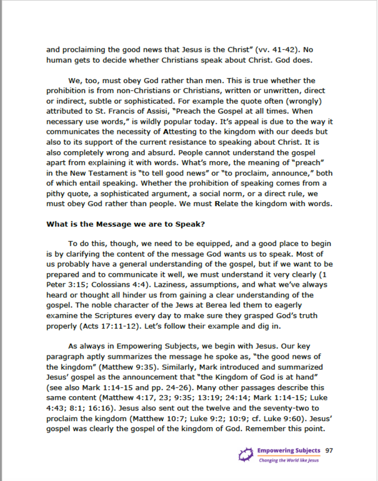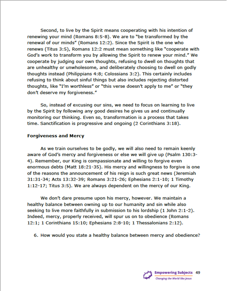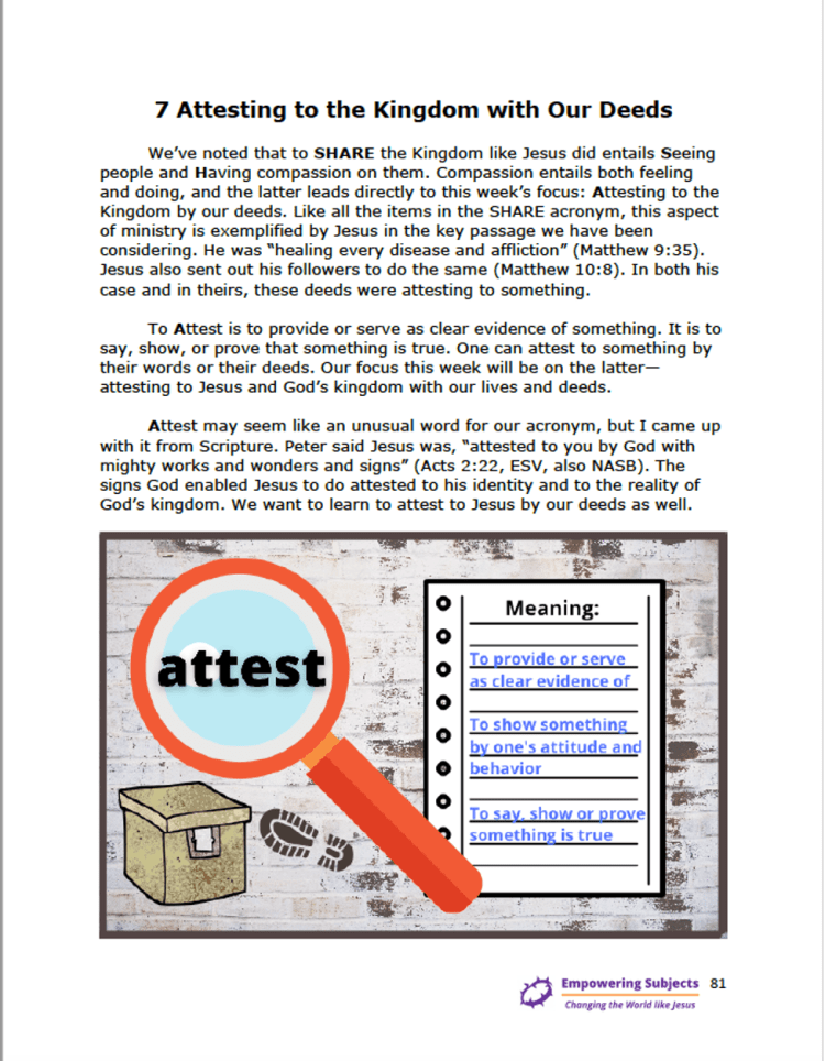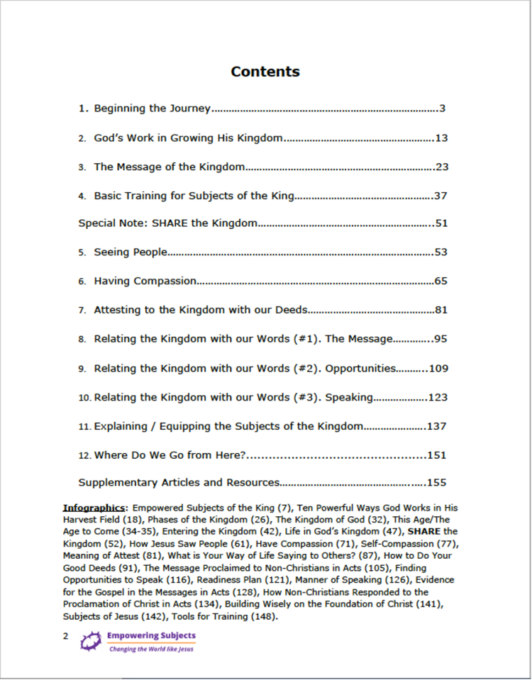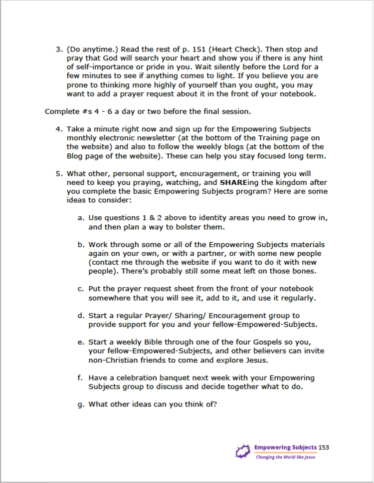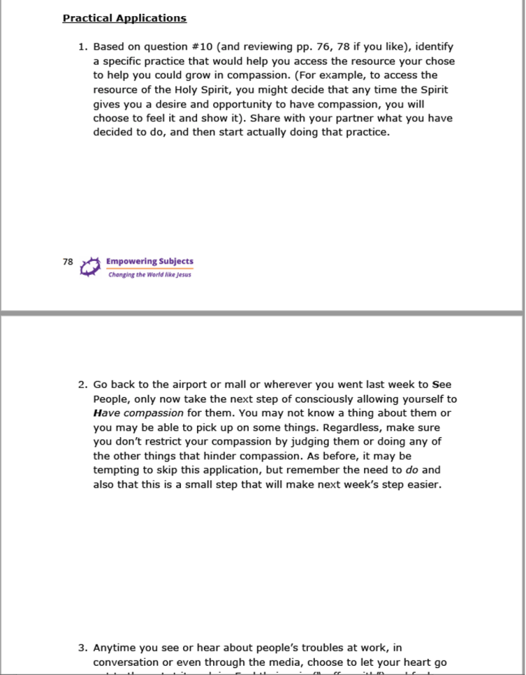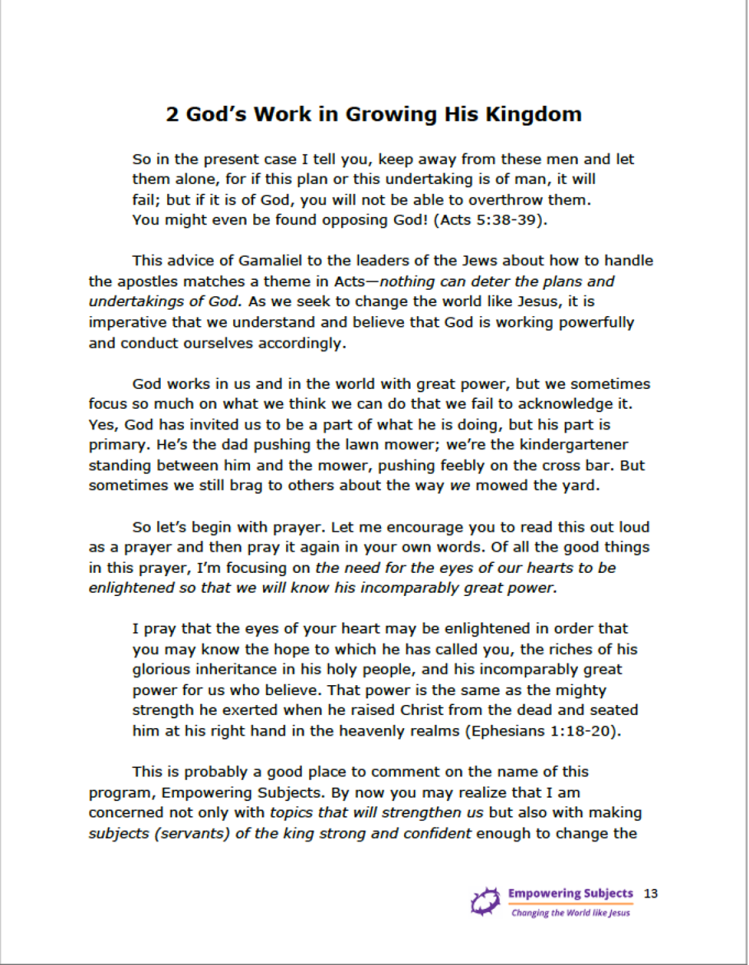 Each week’s video and lesson are listed together on the Curriculum page. Participants watch that week’s video and then print the lesson and put it in a notebook. Alternately, they can use the master file and print the entire manual all at once.